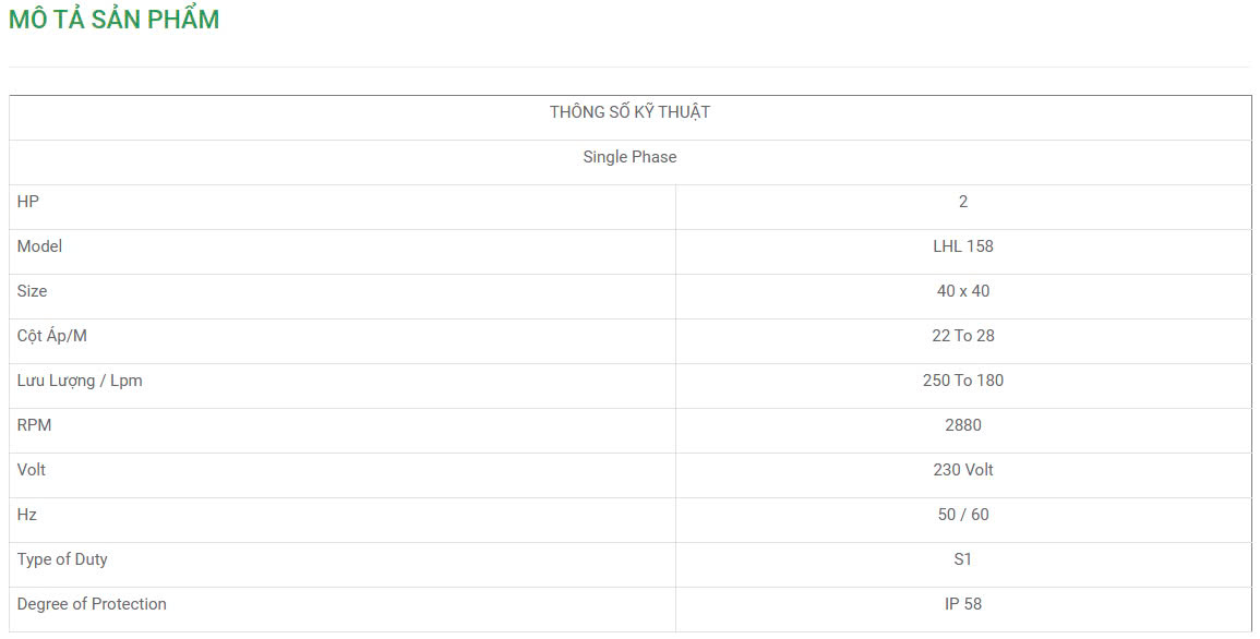 Máy Bơm Chìm Trục Ngang LuBi 1 Phase - 2HP- LHL158