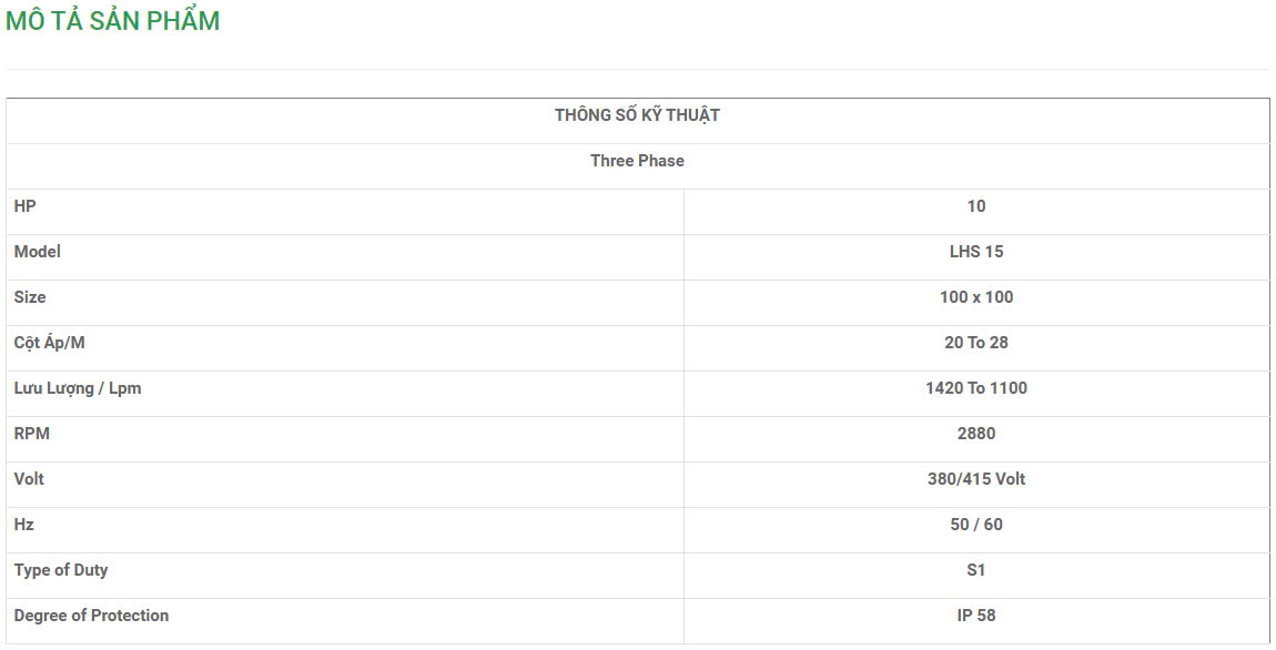 Máy Bơm Chìm Trục Ngang LuBi 3 Phase - 10HP- LHS 15