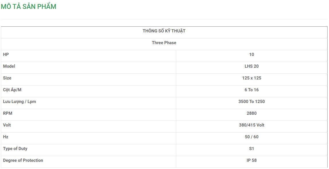 Máy Bơm Chìm Trục Ngang LuBi 3 Phase - 10HP- LHS 20