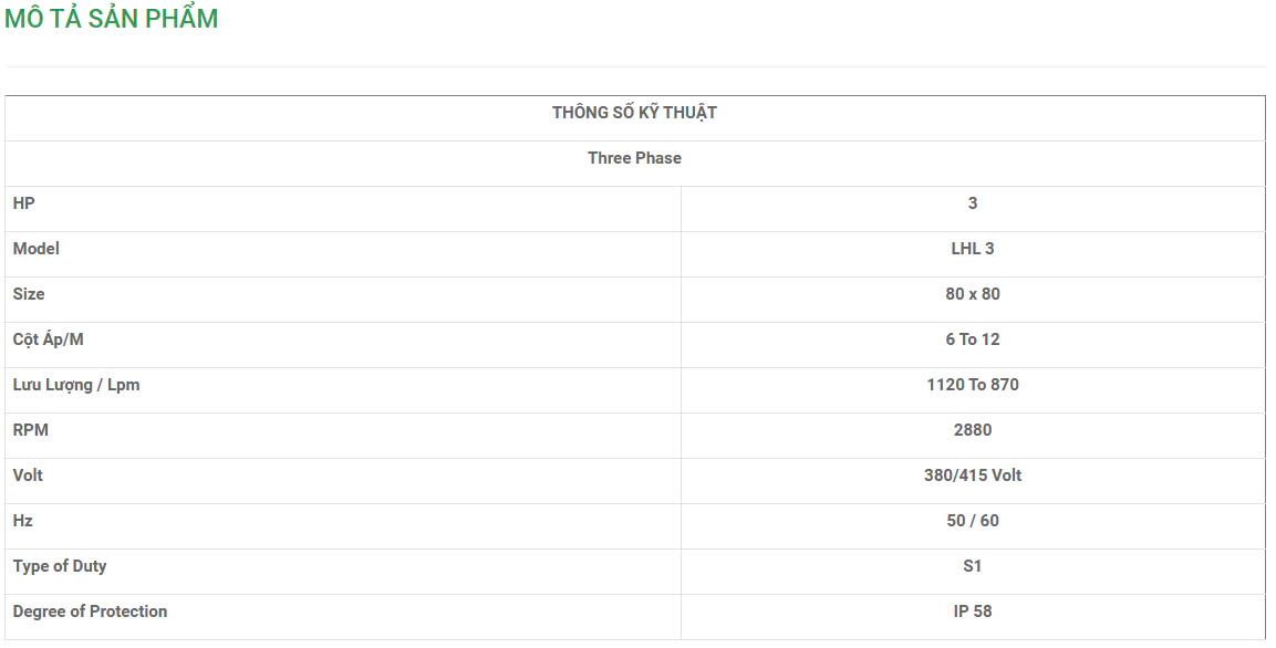 Máy Bơm Chìm Trục Ngang LuBi 3 Phase - 3HP- LHL 3
