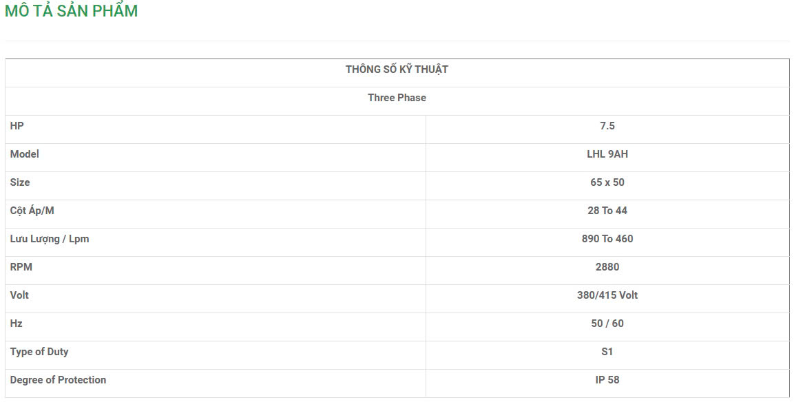 Máy Bơm Chìm Trục Ngang LuBi 3 Phase - 7.5HP- LHL 9AH